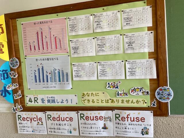 目指せ SDG's 環境委員会が主体となって年間を通じて節電・節水を呼びかけています。これは、学校版環境ISOの取り組みの一環です。