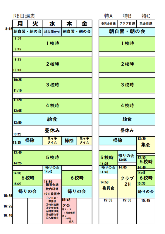 本校の教育学校だより学校の概要安全・防犯・防災保健室PTA図書室