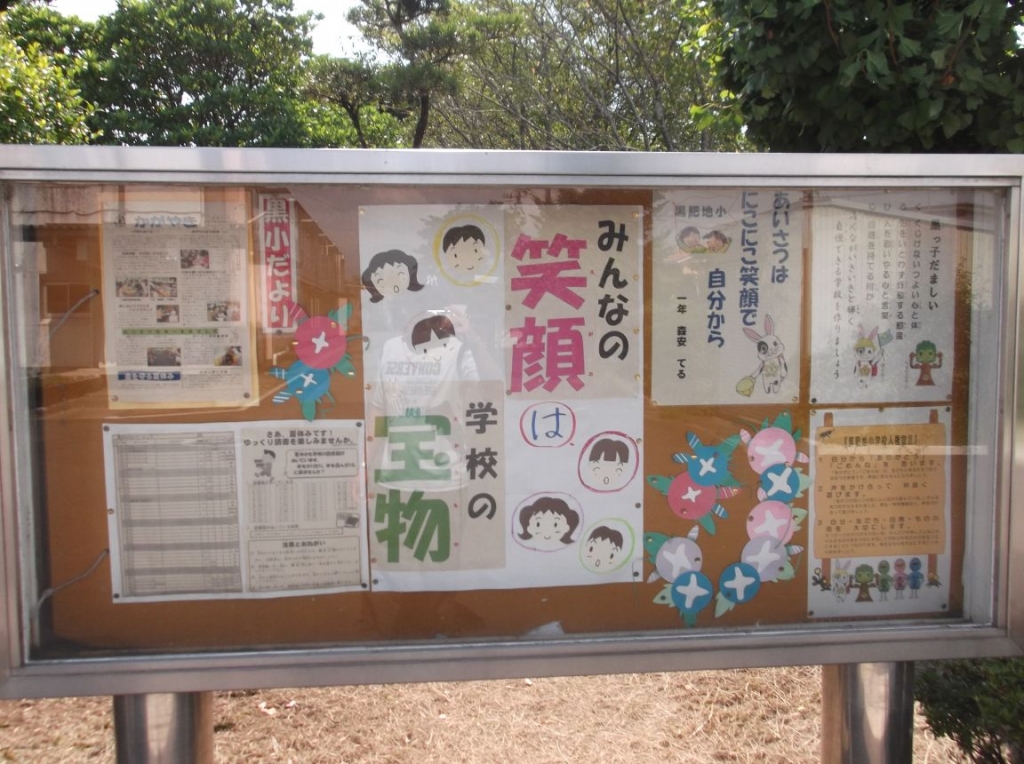 学校の校門から入ると、駐車場があります。掲示板があります。