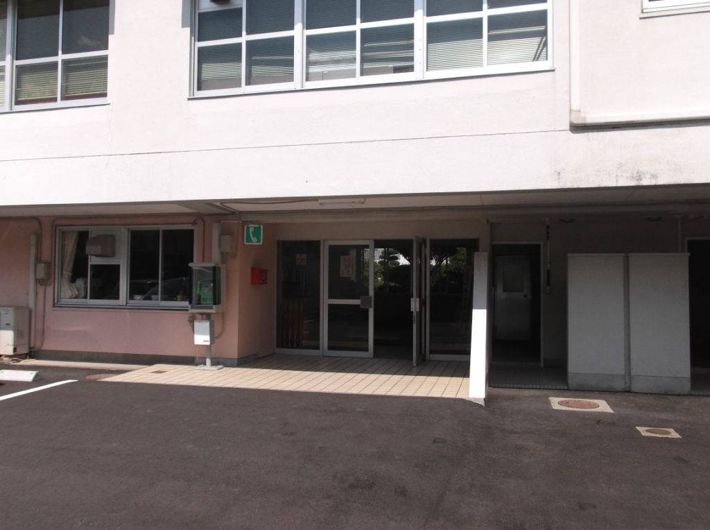 玄関です。お客様はこちらからどうぞ。 運動場から校舎を見ます。
