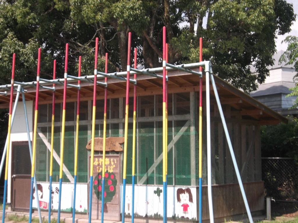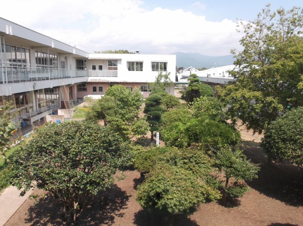 運動場には黒っ子山があります。 中庭があります。たくさん樹木があります。