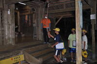 令和3年度(2021年度)の6年生児童27人が、黒肥地小校区に残る日本遺産等を「マインクラフト」を駆使して作製しました。班毎に分かれて現地へ出向き、巻き尺や分度器と糸で作った簡易計測器を使って実測し、算数で学習した「拡大と縮図」を利用して史跡の高さを計算で割り出しました。その後、1ブロックを約50cmと見立ててより実物に近い形で再現することができました。