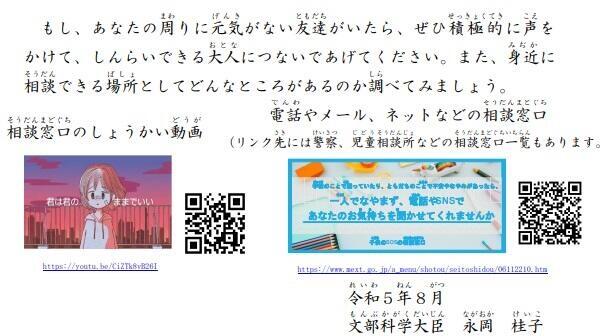つきましては、【別紙】チラシにより児童生徒、保護者、教職員等へ周知をお願いします。