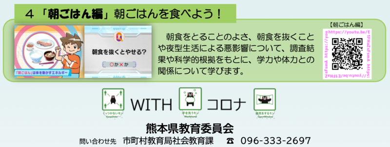 令和4年度(2023年度)熊本県公立学校「心のアンケート」において、児童のスマートフォンの所持率が増加している状況が見られ、また、利用ルールを設けていない事案も一定割合数見られること等を踏まえ、家庭における端末利用が増える夏季休業前に、情報モラルについて、改めて家庭への啓発を進めていく必要があります。