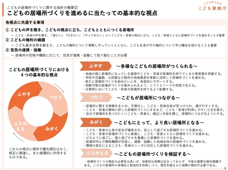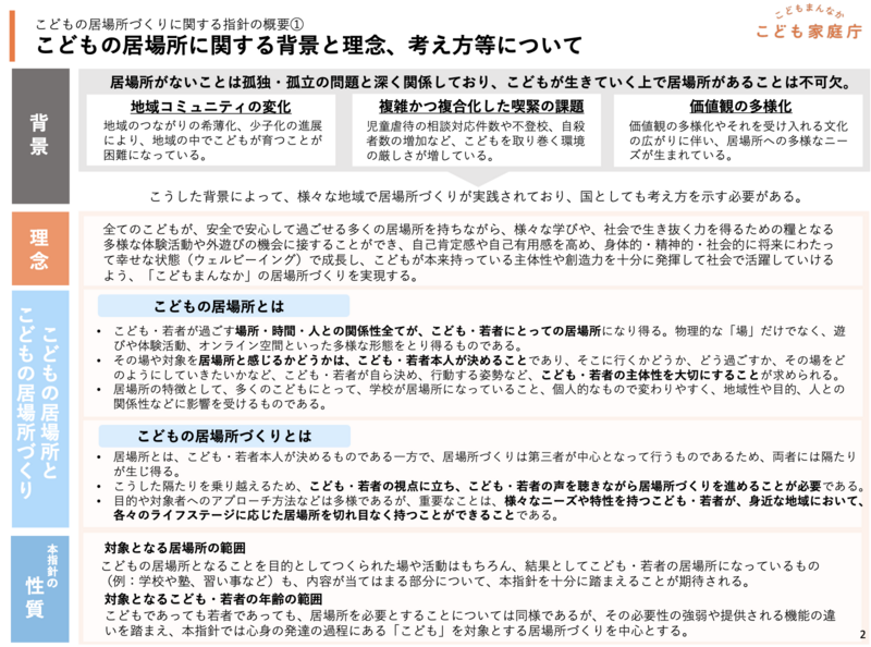 ・みんなが安心して学べる場所にする風土づくりや、家庭や地域との連携・協働を 通じて、放課後を含め、学校がより多くのこどもにとっての居場所となることが 求められている。