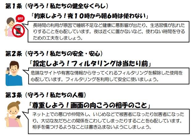 参考に、各学校・家庭・地域で「私たちの 1 か条」やルールづくりについて話し合いましょう。