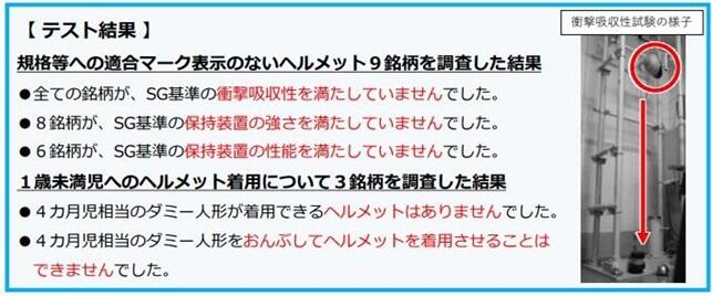 るところですが、安全が確認されたマーク表示がない乗車用ヘルメットについては、衝撃吸収性を満たしていないなど、安全性能が劣っているおそれがあるため、安全が