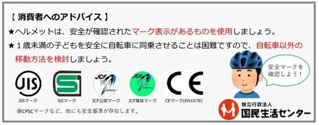 令和5年7月 12 日に独立行政法人国民生活センターより、以下のとおり、自転車の乗車用ヘルメットに関する調査結果等について情報提供がありました。