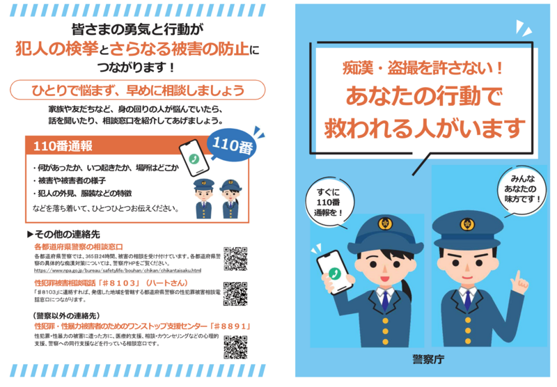 「痴漢・盗撮被害の申告・相談をしやすい環境を整備するための啓発パンフレット」の周知について(依頼)
