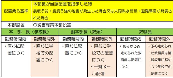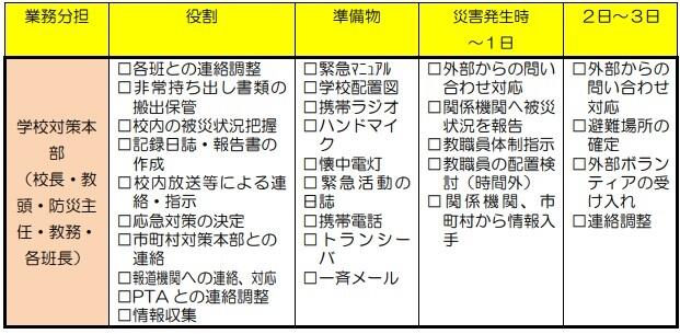 具体的な業務内容を確認・決定し、行動していくために、学校対策本部を設置する。
