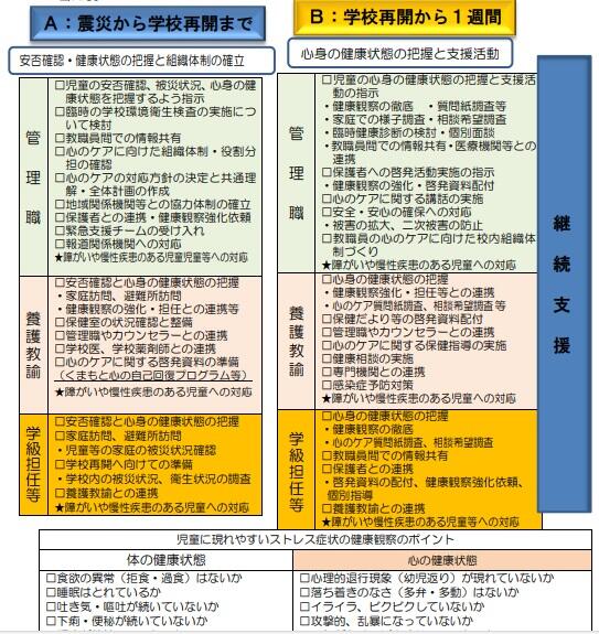 災害時におけるストレス症状のある児童への対応については、健康観察等により児童の異変