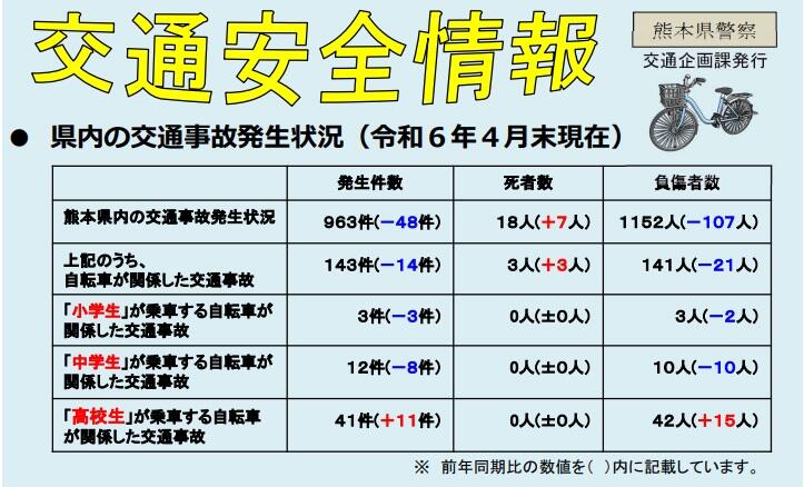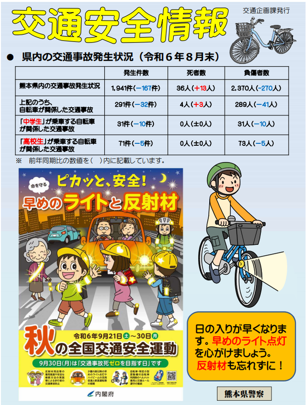 このことについて、熊本県警察本部交通企画課から別紙のとおり情報提供がありました。