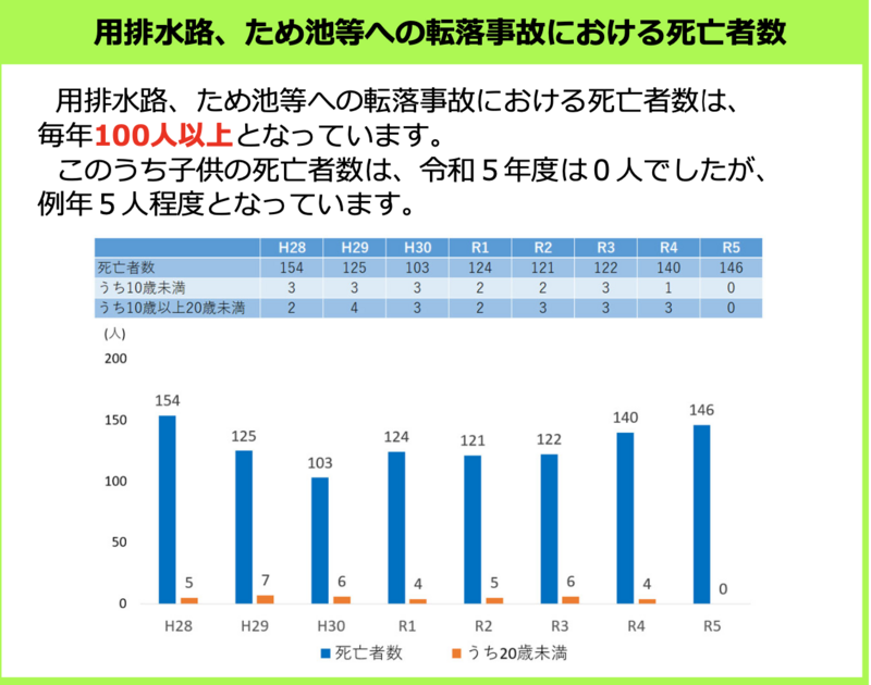 夏休み期間における農業用の用排水路及びため池への転落事故防止