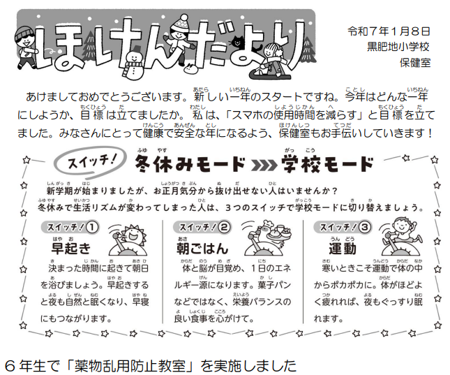 明けましておめでとうございます。冬休みは、お子様、ご家族ともに元気にお過ごしでしたか?いよいよ3学期です。子どもたちには、新学年への0学期ともなる今学期を病気や