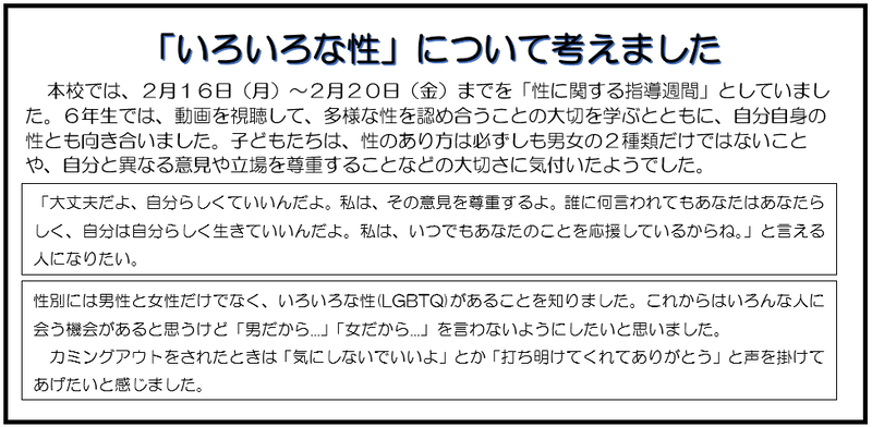 ★ 今月19日(月)~22日(木)は、性に関する指導週間です