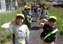 本番では、初めは、緊張していましたが、徐々に1年生に「並んでね。」「次は○○に行くよ。」と声をかけて連れて行くことができました。(2年 学級通信より)