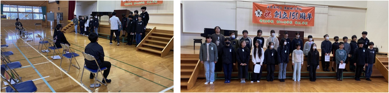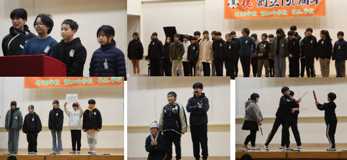 お別れ集会では、黒っ子委員会が司会進行を務めてくれました。はきはきとした大きな声で発言し、みんなの手本となりました。5年生の発表では、「中学校のことを説明しよう」というテーマで、制服や部活動のユニフォーム等を着用して、発表しました。子どもたちも大きな声で楽しく発表できて、楽しかったようです。制服等を貸していただき、ありがとうございました。