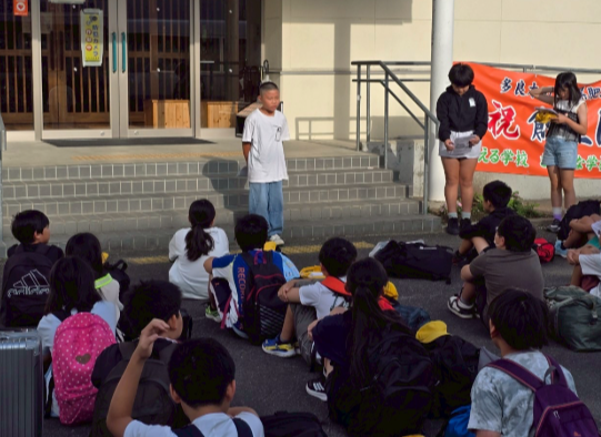 黒肥地小、久米小ともに欠席もなく出発式を迎えました。