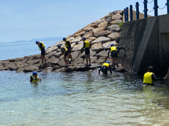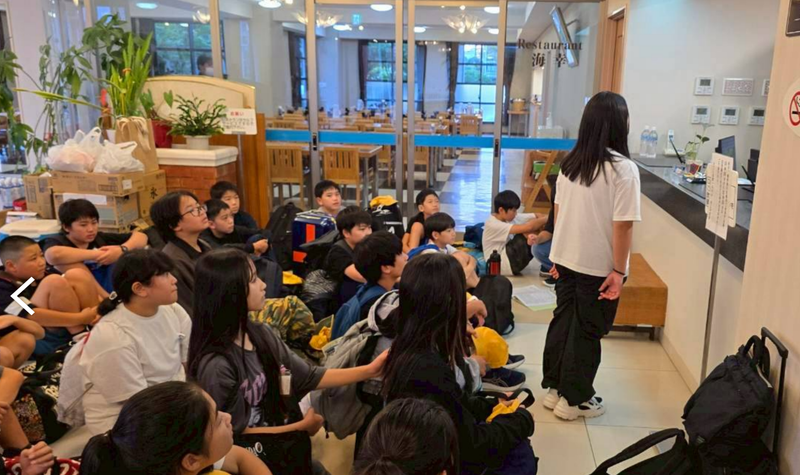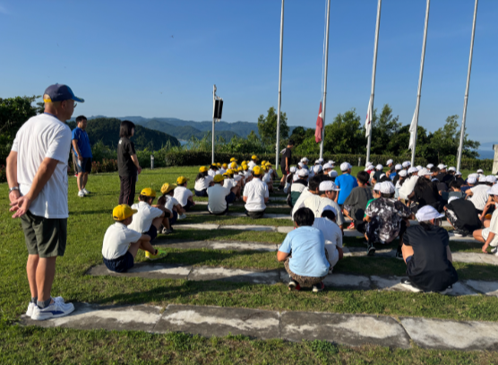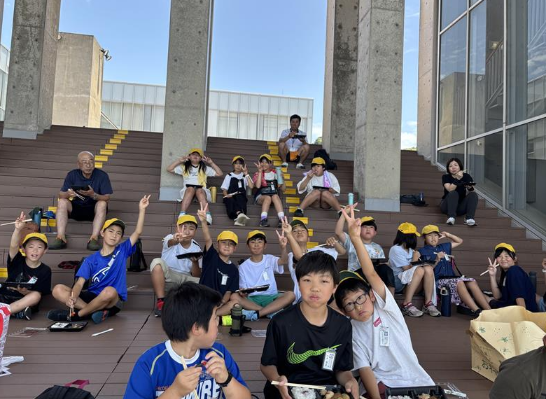 暑さはあるものの湿度はそれほど高くなく気持ちのよいあしきた青少年の家です。施設内や周辺の場所を知るために活動班ごとに活動しています。