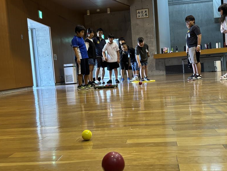 ガガ(大きいボールを使っている方)と、ペタンク(小さいボールの方)をしています。