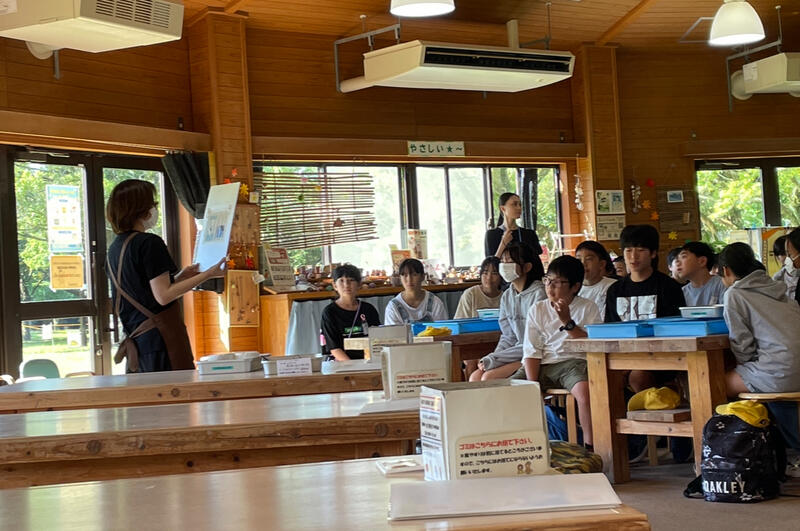 無事に到着しました。すごく真剣に施設職員の話を聞いています。
