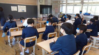 担任の先生の話に落ち着いて耳を傾け、しっかりと考えながら自分の考えを交流していました。
