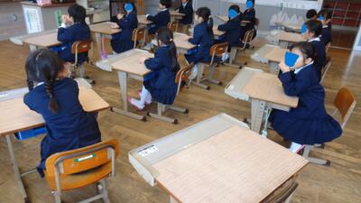 1年教室。 1年生も椅子がしっかり入っています。