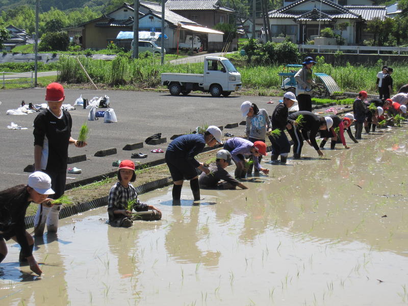 子ども達が楽しみにしていた田植え体験が行われ、大中さんのお手伝いの元、みんなで汗を流して田植えを行いました。真っ「直ぐ植えるのは難しい」「昔の人は大変だったな」子ども達の感想には様々な声がありました。保護者のみなさんにもお手伝いいただき大変助かりました。
