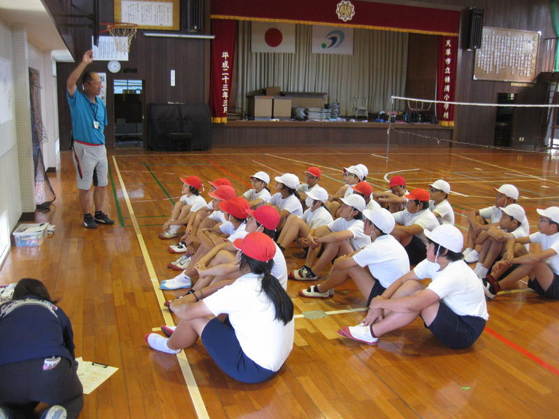 ソフトバレーボールの授業でしたが、体育の授業の中でも他の教科と同様に子ども達に課題を持たせて、その課題を解決していこうという学習の流れがあります。今回は担任の宗像先生からはラリーを長く続けるためにどんな工夫をすればよいのかというテーマで学習が進められました。先生方もこの授業を通して体育の授業づくりを学ぶ事ができました。子ども達はグループでいろいろな意見を出しながら工夫してラリーのポイントを探していました。