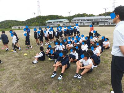 おまけです。 この体育館に楠浦小学校全児童(90人)が集結しました。体調もよくなる季節です。全員そろっての『学びの集会』でした。