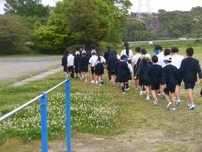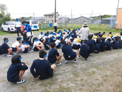 避難完了です。この後、避難訓練の反省を各学級でしました。災害はあってはならないのですが、備えは大切です。学校へ帰るときに、教頭先生と「どのあたりで避難経路が絶たれる可能性があるのか」「その場合、どこに避難しようか」等話しながら帰ってきました。想定外が起こることも意識しなければなりません。改めて、児童の命も預かっているのだと実感した避難訓練でした。