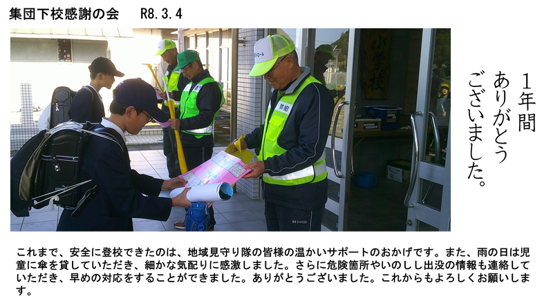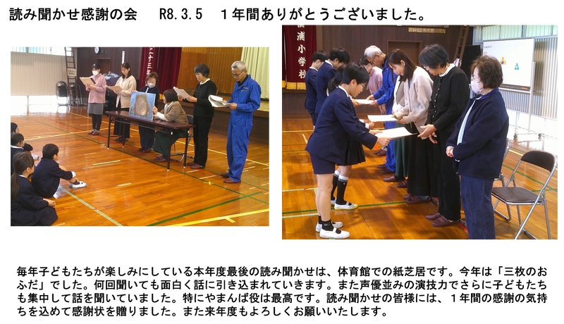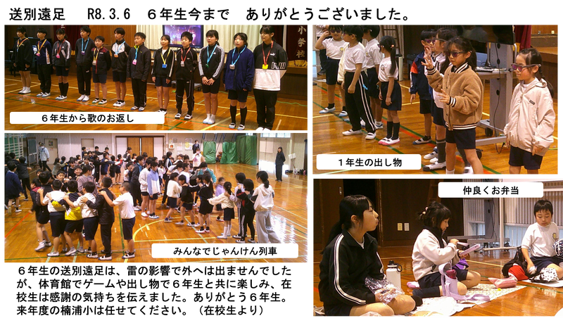 7名の先生方が本校を転任・退職されました。(児童には先生方の詳しい転任先のお知らせ文書を持たせています。)ホールで放送による退任式を行いました。代表児童がそれぞれ花束を渡し、お別れの言葉を述べてくれました。新天地での先生方のご活躍をお祈りします。