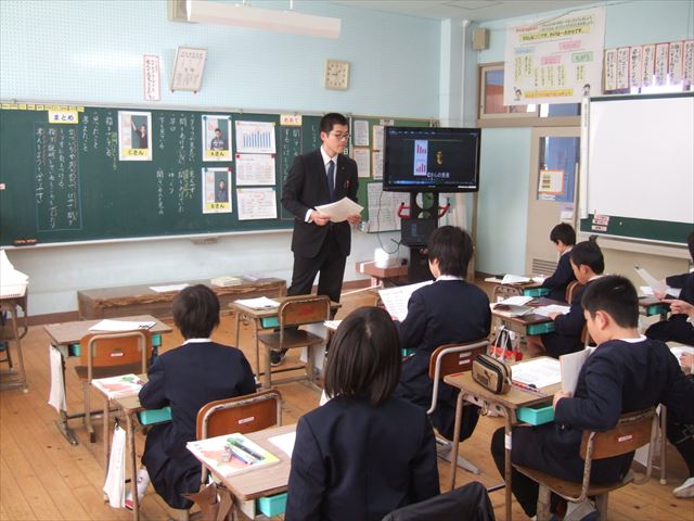 学校の先生の初任者研修が葛渡小学校で行われ、吉森先生が道徳の授業をしました。