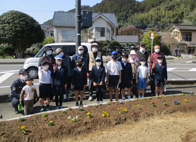 葛渡小校区青少年健全育成協議会活動として、3・4年生が、葛彩館前交差点の花壇にパンジーの苗を植えました。
