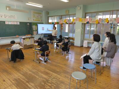 1年生は、おうちの方に初めて授業を見ていただきました。ドキドキかな?