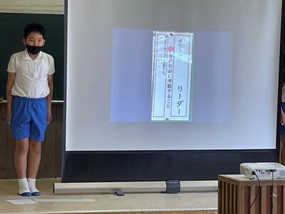 5・6年生は、「環境・平和・人権」について発表。5年生は、「水俣に学ぶ肥後っ子教室」での学びをしっかりと発表しました。長い台詞をよく覚えたなあ(^_^)b