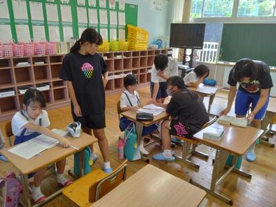 こんな時は4年生が助けてくれます。複式学級のよさですね(^_^)b