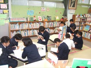 周りの机にもたくさんの子どもたちが座って本を読んでいました。
