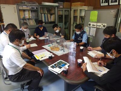 芦北地域振興局土木部維持管理調整課、水俣警察署地域・交通課、水俣警察署葛渡駐在所、水俣市土木課道路公園管理室、水俣市教育委員会の関係の皆様に来校いただき、通学路危険箇所について協議しました。