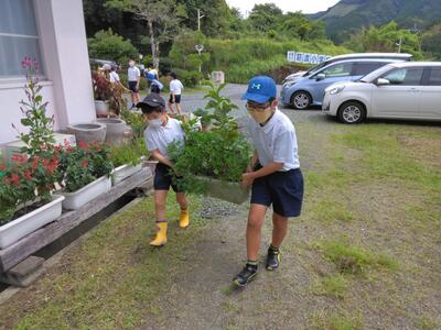 全児童でサツマイモの苗植えをしました。