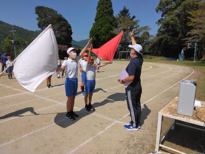 「気をつけー!」閉会式の練習。本番をお楽しみに(^_^)/~