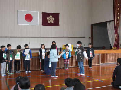 6年生からは、お礼に「3ヒントクイズ』みんなよく6年生のことを知っているね(^_^)b