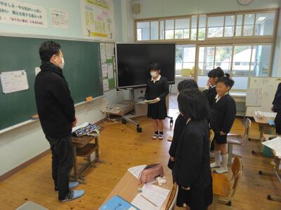 到着後、6年生とのお別れ会。企画・進行は5年生が頑張りました(^_^)b