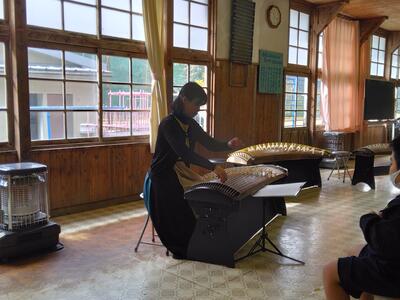水俣市教育委員会が実施する熊本県立劇場演奏家アウトリーチ事業で、箏演奏家の小路永和奈さんが来校されました。