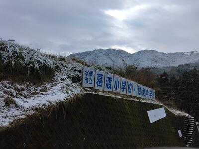 今年度初めての雪が降り積もりました。周辺の山々は真っ白です。