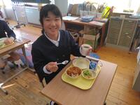 朝の交通指導で子どもたちを見守ってくださる石本さん、地域のお弁当屋さん「夏ちゃんの店」のご厚意でしたm(_ _)m 「いただきます!」