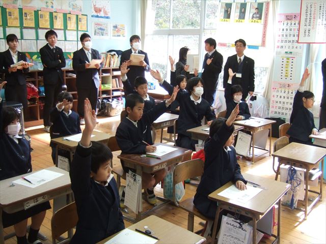 3年生はたくさんの初任者の先生に囲まれながら、積極的に発表していました。