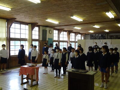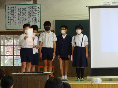 2学期終業式。水俣市読書感想文コンクール入賞者、蘇峰筆塚顕彰書道展入賞者、漢字大会・計算大会満点賞受賞者にそれぞれ賞状が贈られました。おめでとう\(^_^)/