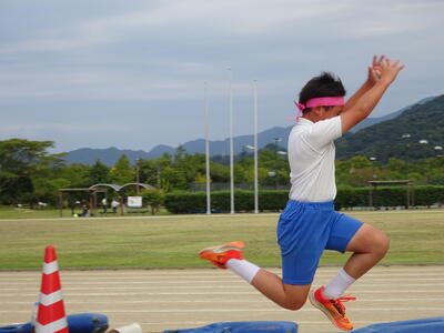 本大会では、100M走、800M走、走り幅跳び、ボール投げ、リレーの競技が実施されます。隣接する緑東中学校の運動場で、保健体育科の先生に走り方などをご指導いただいたり、競技別に分かれて練習を行ったりしてきました。