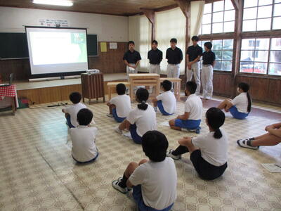 水俣高校建築コースの生徒さんや先生方のご指導のもと、卒業記念品制作を行いました。最初は木育授業として、高校生が先生となってプレゼンをしてくれました。